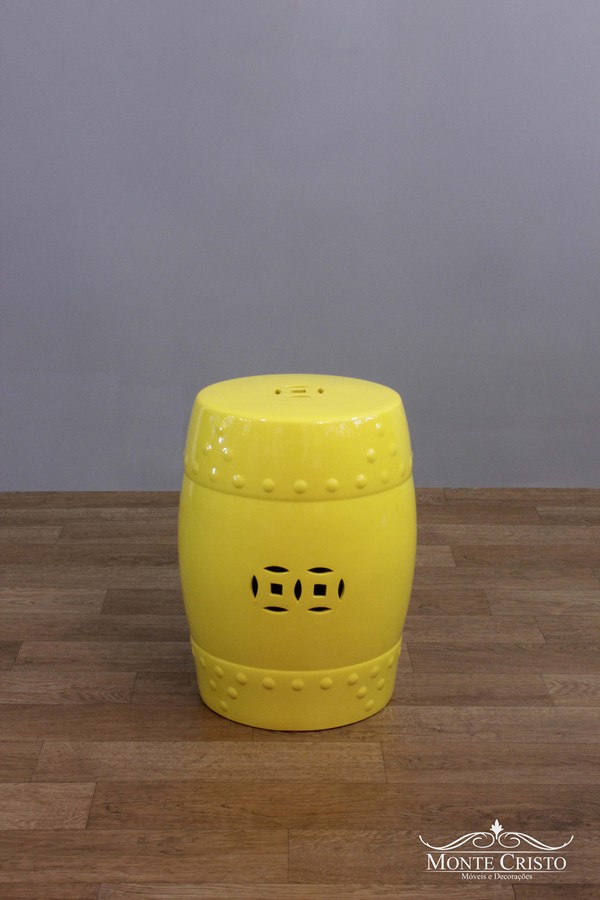 Banco Seat Garden amarelo, também disponível em outras cores. O Seat Garden, que também é conhecido como tamborete ou simplesmente banco de jardim, é uma peça milenar de origem chinesa, versátil para decorar qualquer ambiente de sua casa, inclusive jardim e terraço. Por ser toda em cerâmica o Seat Garden é muito resistente.