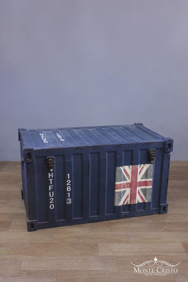 Baú Grã-Bretanha container azul grande, todo em madeira.