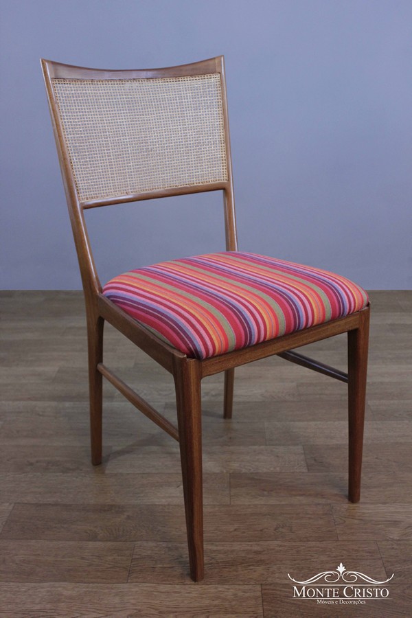 Cadeira VK natural, também disponível em outras cores. Estrutura reforçada que garante maior estabilidade e segurança, a cadeira VK é fabricada na madeira Ipê que recebe tratamento contra cupim além de seladora que a impermeabiliza. A cadeira VK é uma das cadeiras mais famosas do mundo, fiel aos traços originais do designer alemão Vladimir Kagan, possui assento em tecido e palha no encosto.